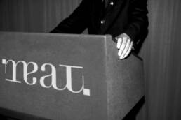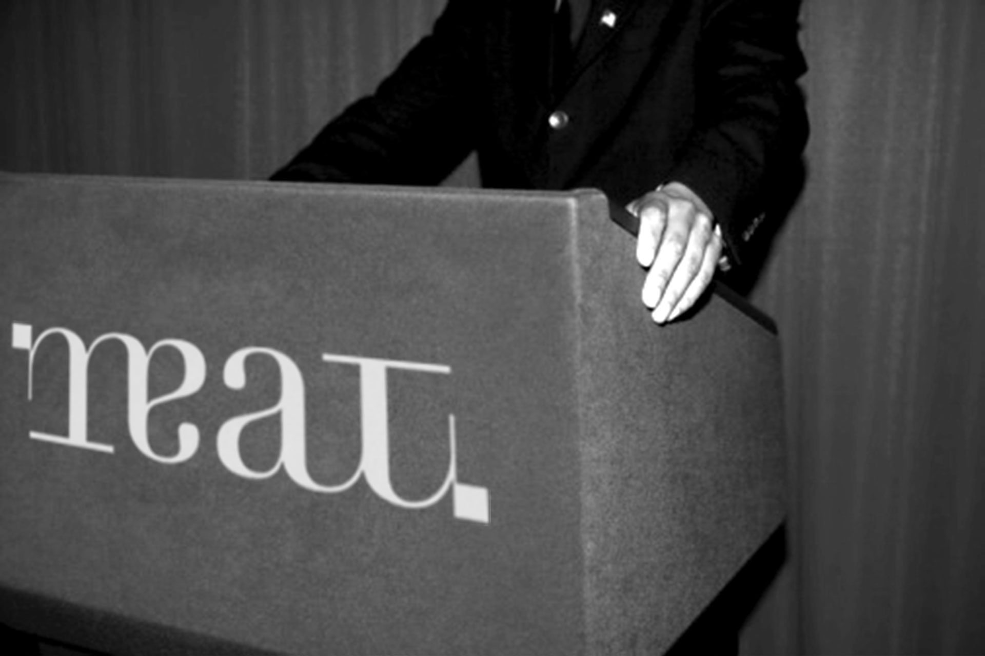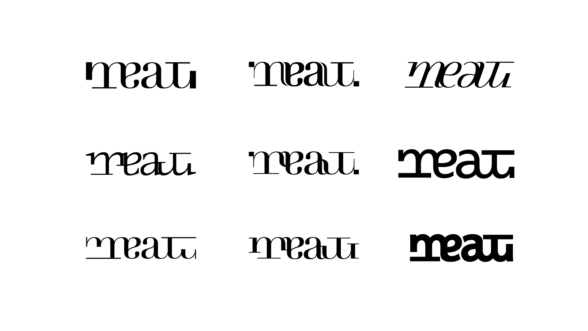 This logo is a rotational ambigram, meaning that it is the same whether it is viewed right-side-up or upside-down. Not only does this provide an interesting visual language for future campaigns, but it also has metaphorical meanings that we think will add value to the MEAT brand, and start the gallery off on a strong heading.